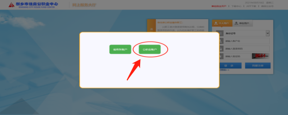 2.选择“公积金账户”→“单位用户”→“电子营业执照登录”后通过微信扫码登录;